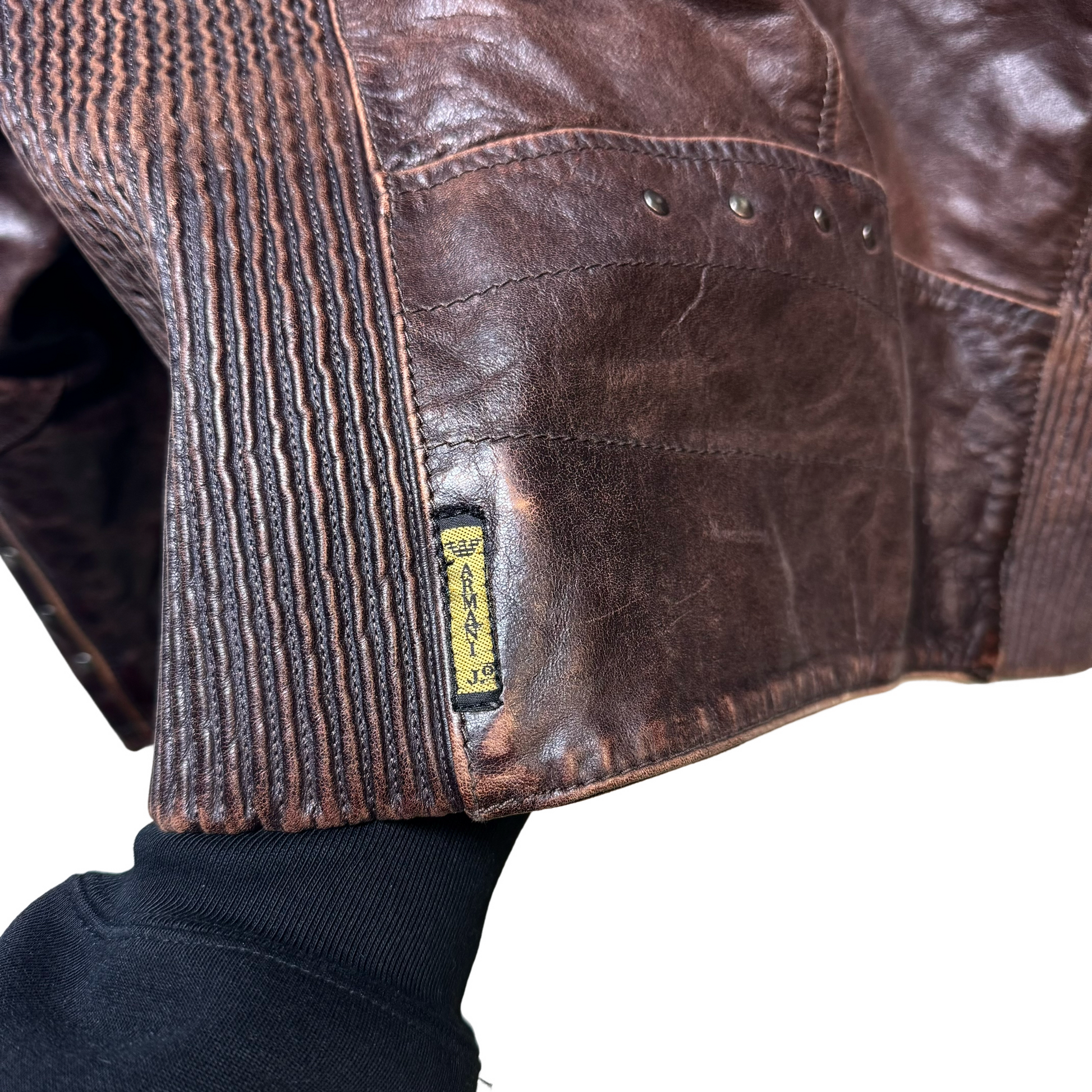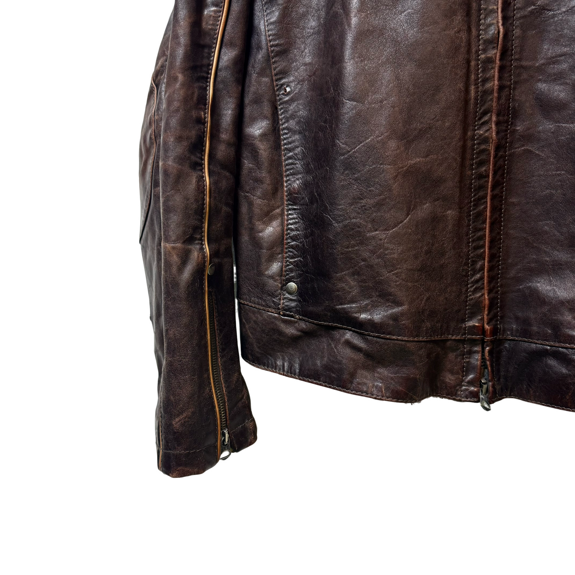 Late 90s Armani Jeans Piped Leather Jacket - L